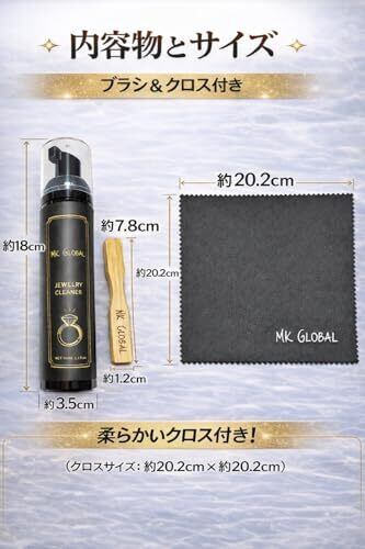 JEWELRY CLEANER MK GLOBAL 泡 貴金属 ジュエリー クリーナー ネックレス 指輪 金 ゴールド 銀 シルバー くすみ 黒ずみ クロス ブラシ付き