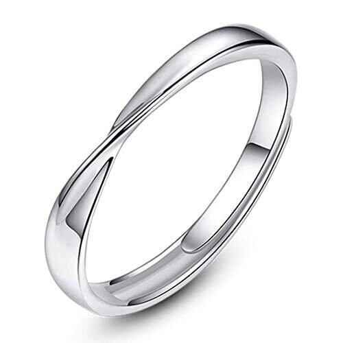 [Rockyu] フリーサイズペアリング シルバー925 ピンクゴールド シルバー モビウスデザイン ジルコニア カップルリング (シルバー, 男性)