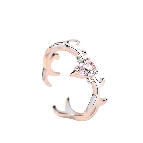 [Rockyu] 指輪 ペアリング フリーサイズ 2個セット シルバー925 鹿指輪 ジルコニア 一粒 鹿の角 永遠の愛 バレンタインデー 恋人の日 プレゼント (female-ジルコニア-シルバー)