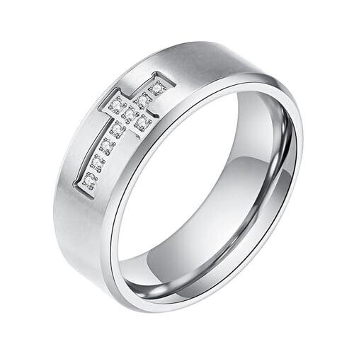 [JEWELRYWE] ステンレス 指輪 メンズ リング 十字架: シンプル クロス 結婚 婚約 約束 名入れ可能 カジュアル ビジネス メンズ ファッション アクセサリー - 誕生日 クリスマス バレンタインデー プレゼント