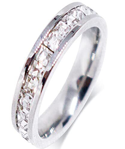 [GetWing] 指輪 リング チタン鋼製 キュービックジルコニア フルエタニティリング 幅4mm