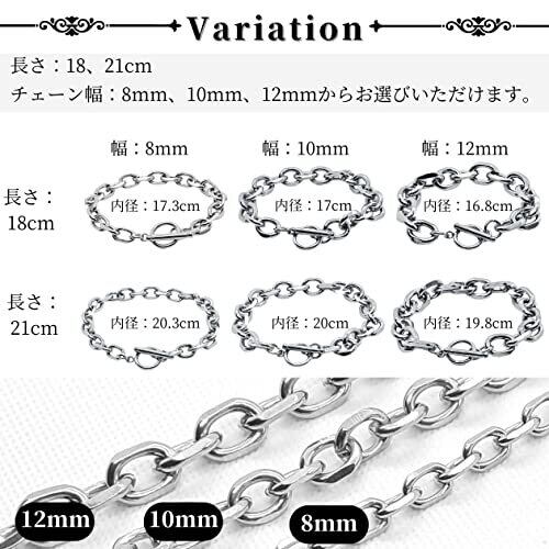 [swars] ブレスレット ユニセックス 金属アレルギー対応 ステンレス マンテル チェーン シルバー (18, 幅:12mm)