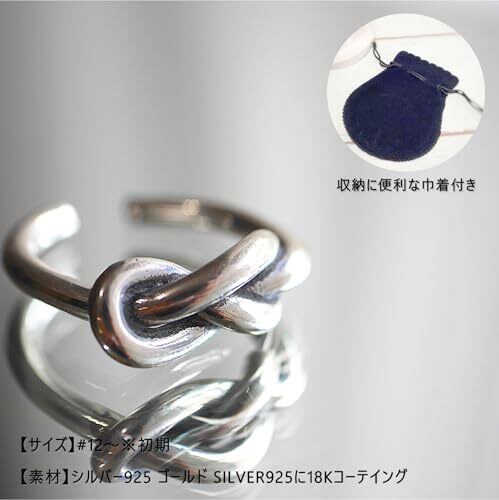 [#925sss] [公式] シルバー925 本物 オープン リング 指輪 ロープ ツイストノット フリーサイズ 調整可能 高級 巾着付き 男女兼用 [安心の30日返品品質保障]