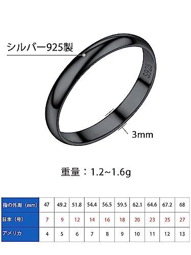 [PROSILVER] 指輪 リング レディース メンズ シルバー925 ブラック 黒色 太め3mm 細め ピンキーリング ペアリング 金属アレルギー対応 シンプル お洒落 男女兼用 地雷系 ファッション アクセサリー[18号]