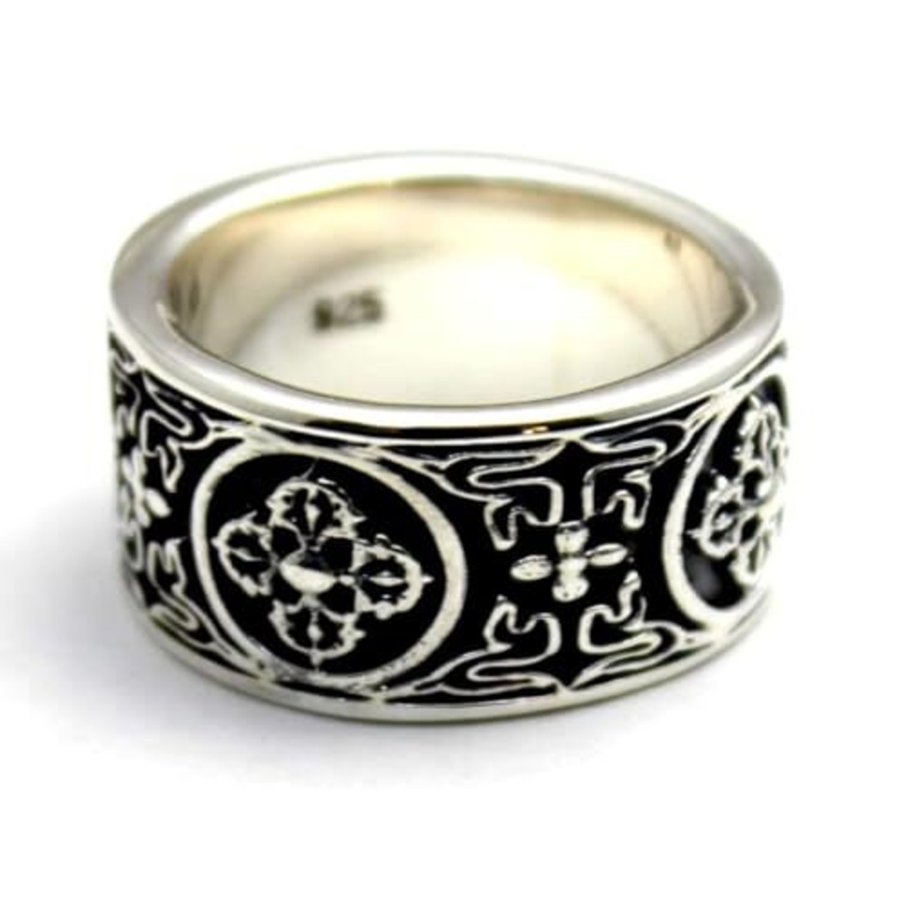 サイズ:リングの最大幅約11mm、厚み約2mm 材質:シルバー925 説明:魔除けとして身に着けられるチベット法具カツマ(羯磨)のシルバーワイドリングです。