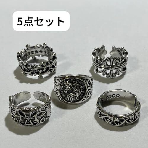 セット構成:クロス、イーグル、フェザーなど多彩なデザインのリング5点セット デザインスタイル:アメカジ、メキシカン、ヴィンテージテイストを融合したユニークなデザイン カラーバリエーション:重厚感のあるシルバートーン仕上げ 素材仕様:高品質な合金素材を使用し、シルバートーン加工を施した仕上げ サイズ調整:内径が調整可能なデザインで様々な指のサイズに対応 着用スタイル:単体使用や重ね付けなど、多様なアレンジが可能