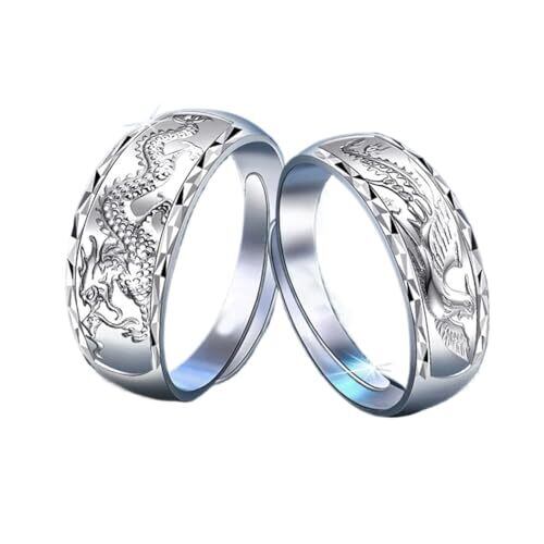 [Rockyu] 指輪 ペアリング 純銀925 龍鳳カップルリング 人気 ペアアクセサリー メンズ レディース 龍鳳呈祥 彫刻 シルバー 龍柄 鳳凰模様 お揃いリング 結婚記念日 誕生日プレゼント