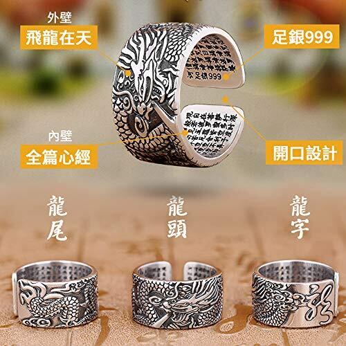 [JIANGXIN] 鑑定書付き 調節可能 お守り指輪 動物 龍 999シルバーアクセサリー シルバーリング メンズ 指輪 龍 ドラゴンリング 般若心経 リング メンズ 指輪 シンプル シンプル 誕生日 プレゼント男女兼用 ユニセックス