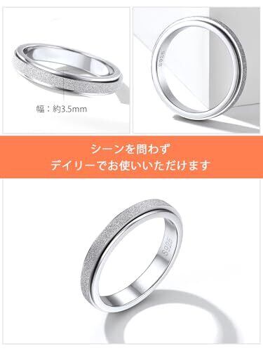 [スピナーリング] 中央のパーツが回転できる個性的なギミックリングです。指で中央のパーツを回すと集中力アップできるし、ストレス軽減や不安解消にも効果がある不思議でステキなアイテムです。 [シルバー925リング] シルバー925にプラチナコーティングが施された素材を採用。高級感がありつつ手ごろな価格で購入できるのも魅力です。 [存在感のある太さ] 細過ぎず程よい3.5mm太さで、モードな装いにもマッチします。ひとつではもちろん、ほかのリングとの重ね付けも楽しめます。 [ユニセックスの指輪] 服装を選ばないすっきりとしたデザインで、幅広い年齢層の方におすすめです。デイリーからビジネスまでシーンを問わず使いやすいのも魅力。 [豊富なサイズ] 9号、12号、14号、16号、19号、22号、24号、26号の8サイズを用意しております。ペアリングにもおすすめです。 [専用ケース付き] 専用のケースが無料で付属するので、誕生日、クリスマス、ホワイトデーなど、記念日のプレゼントやご自分へのご褒美プレゼントにもおすすめ。