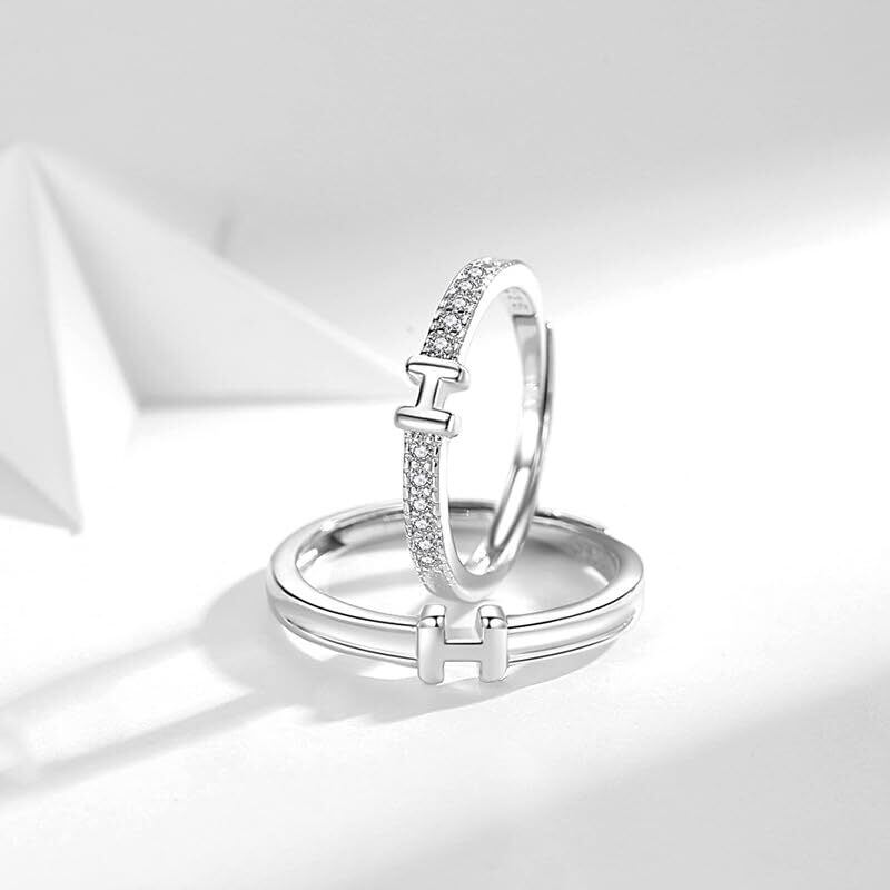 [Rockyu Allure] ペアリング レディース メンズ シルバー S925 H字デザイン ゼリーストーン つや消し カップル 結婚指輪 クリスタル ファッション カジュアル ペアアクセサリー