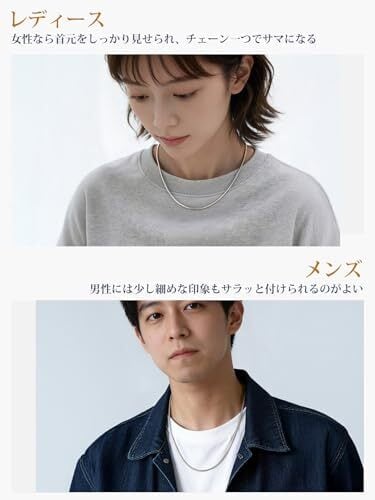[幅2mmスネークチェーン] 緻密に編み込まれた滑らかな2mmスネークチェーンは、シンプルかつ存在感があり、性別・年齢を問わず、カジュアルからフォーマルまであらゆるシーンで主役になれます。単品でも、お好みのペンダントと合わせてもおしゃれです。 [金属アレルギー対応ネックレス] 汗をかいても痒くならない、サージカルステンレス製のネックレスチェーンです。金属アレルギーの方にも安心してご使用いただけます。お風呂や海水浴でも着けっぱなし可能です。 [多彩な18通りから選べる] 40cm、45cm、50cm、55cm、60cm、65cmの全6サイズをご用意。カラーは洗練されたシルバー、華やかなゴールド、モダンなブラックの3色からお選びいただけます。ご自身の好みや用途に合わせて、最適な1本を見つけることができます。 [着け外しが簡単] 一人で簡単に着脱できるワンタッチプッシュ式留め具を採用します。また、留め具の直径が3mmのため、バチカン内径は3mm以上のペンダントトップと組み合わせることが可能です。1本で多彩なコーディネートをお楽しみください。